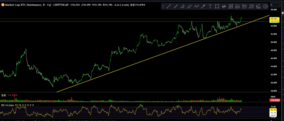 비트도미는 꾸준히 우상향 중이다,, 아마 계속계속 올라가지 않을까 싶다.