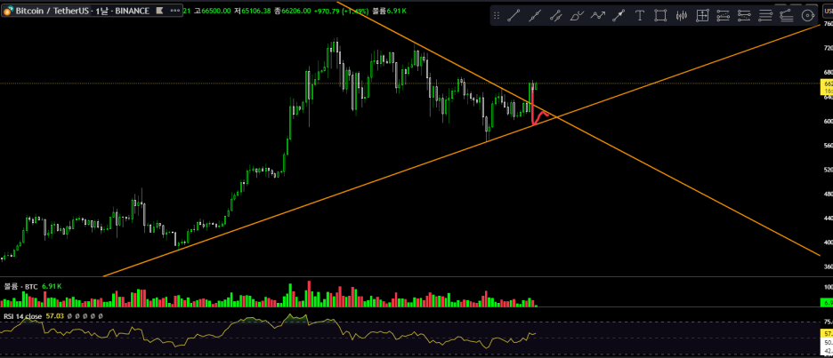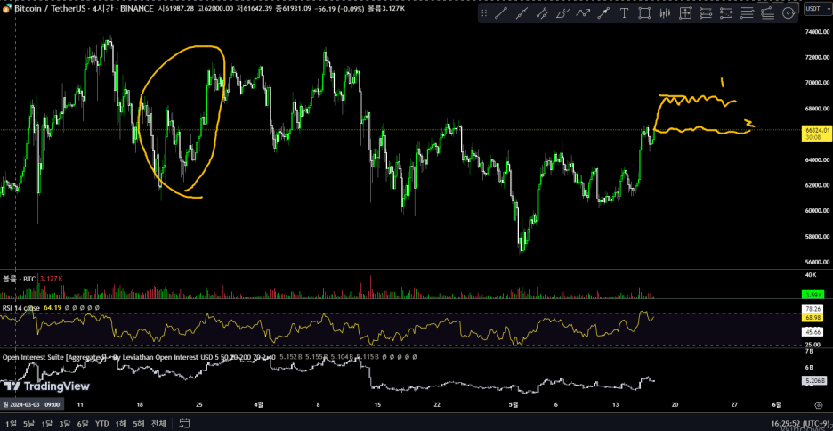 지난번 글에서 61.7k에서 잡고, 66k 롱 익절을 본다고 썼지만